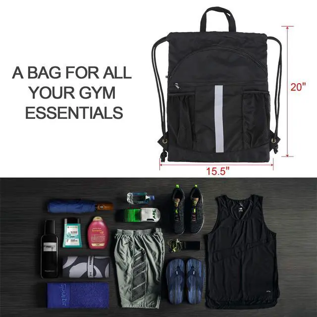 - Large Capacity: The draw string sack pack measures 15.5x20 inches, organize your equipment, the size will good accommodate gym clothes, towels, hats, glasses, sports gears, lunch, or snacks. It's perfect for gym, sport, yoga, dance, travel, carry-on, luggage, camping, hiking, team work, training and more!