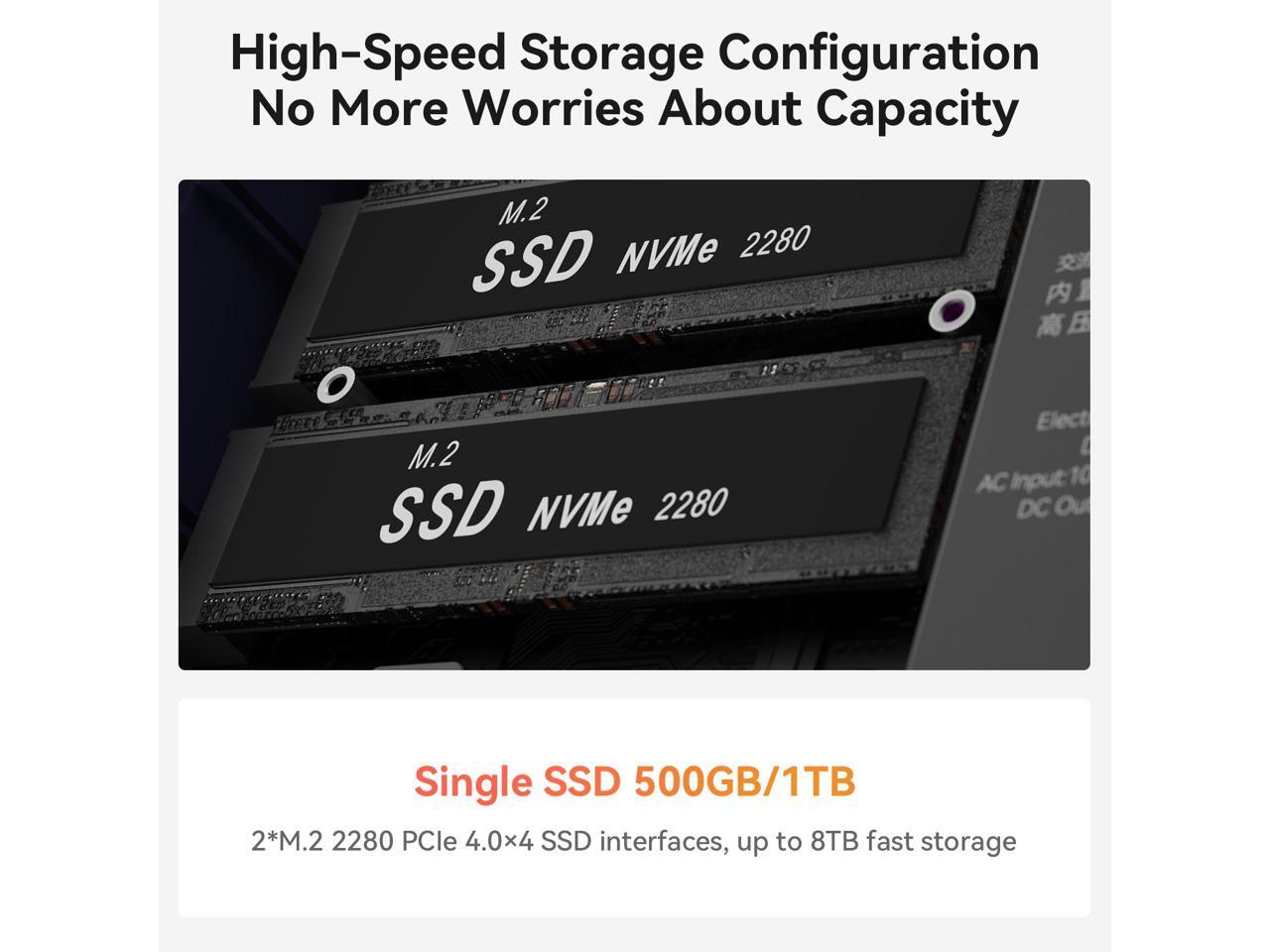 - This EQR6 Mini Computer comes with the AMD 6nm Processor, 32GB LPDDR5 Memory(2 x 16GB), and 500GB M.2 2280 NVMe SSD(Dual M.2 PCIe Gen4.0, Max 4TB*2).