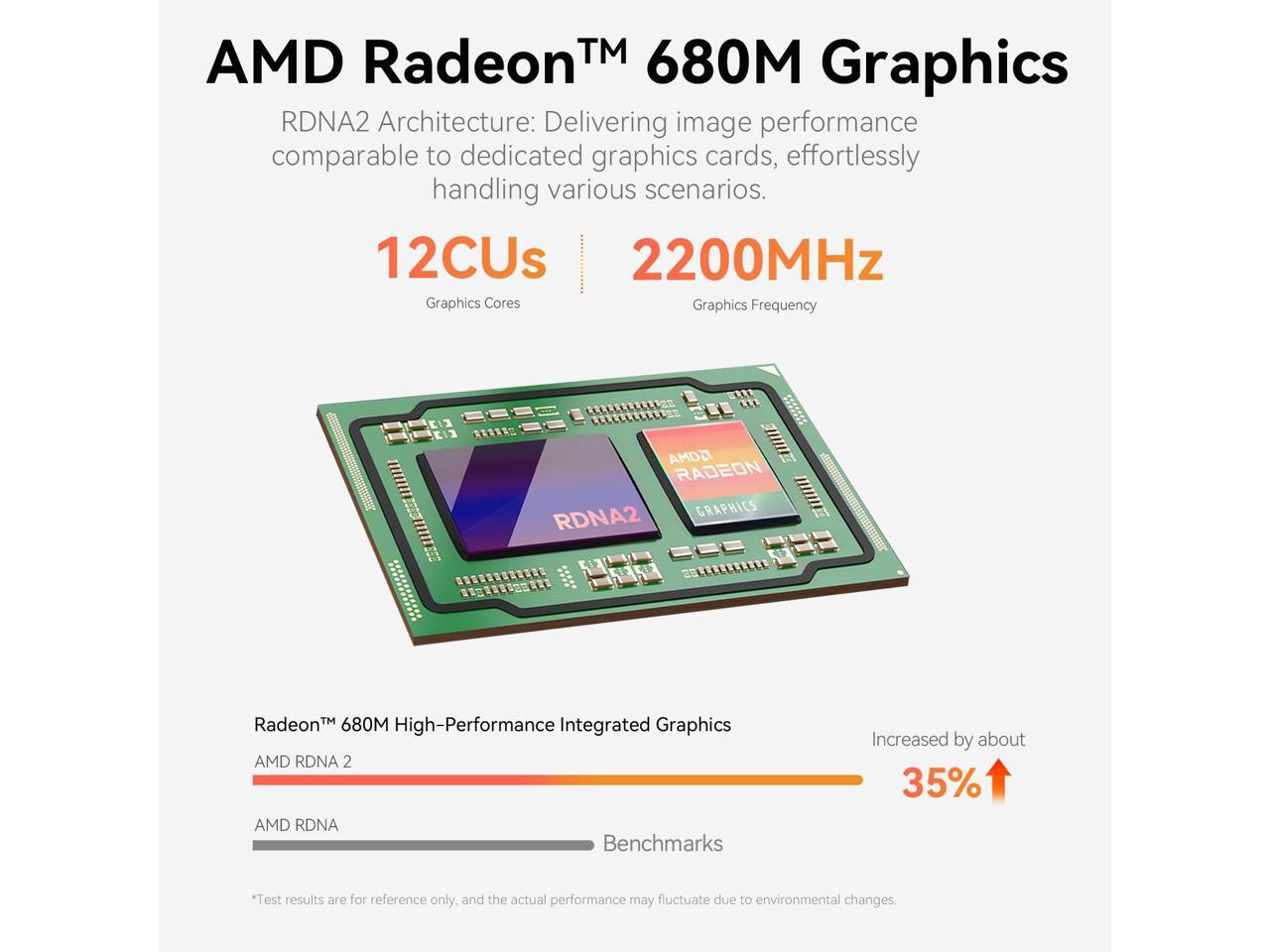 - 6800H Mini PC integrates AMD Radeon 680M 12cores 2200 MHz GPU, it can connect up to two monitors via dual HDMI ports,