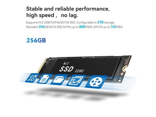 - Expandable Storage - The mini computers have two Internal Connector, one is M.2 2280 SSD, the other one is a 2.5-inch 7mm SATA HDD which support up to 500GB~2TB large expandable storage.
