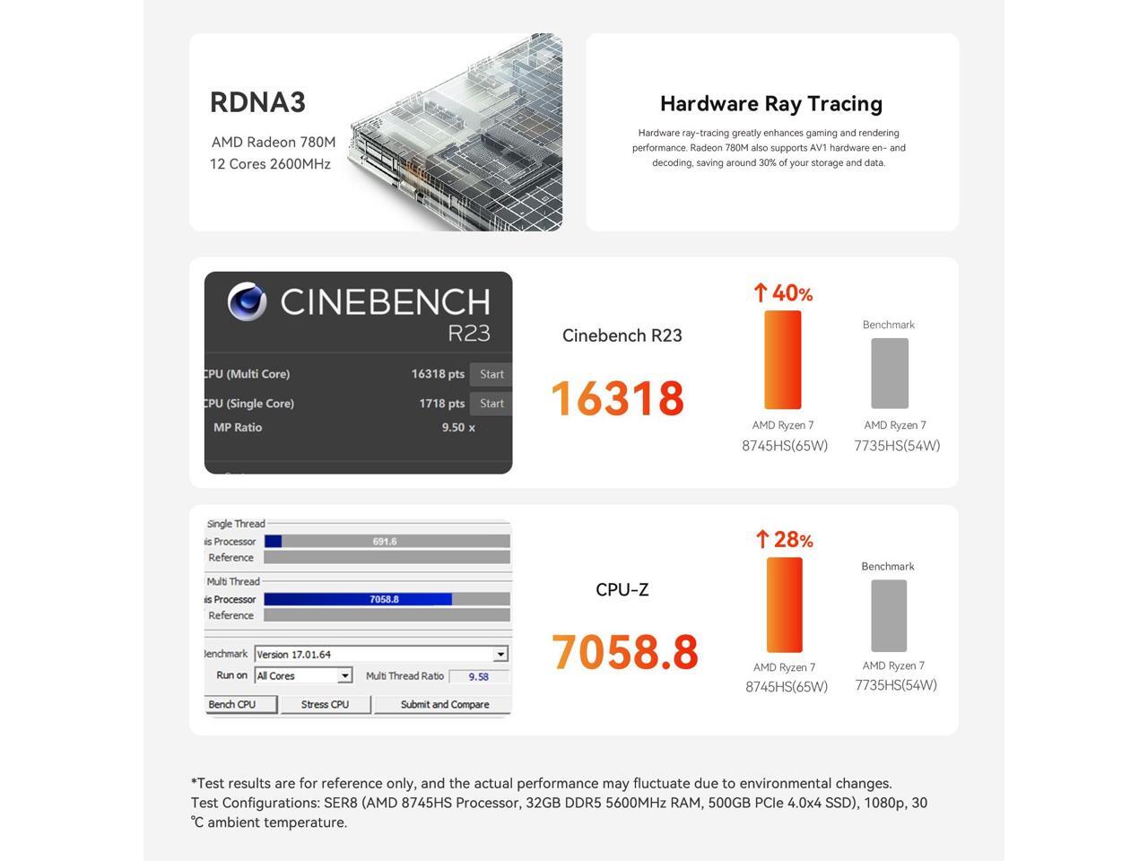- Gaming Mini:The 8745HS mini pc Equipped with default 54W,up to 65W TDP.