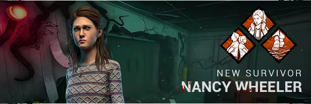 Stranger Things is a Chapter for Dead by Daylight. The Stranger Things Chapter includes a new map, the Underground Complex, located below the Hawkins National Laboratory. A Demogorgon is the new untamable Killer. Against the Demogorgon stands not one, but two new Survivors: Nancy Wheeler, a tough aspiring journalist, and Steve Harrington, a former high school jock with a knack for finding trouble. The Stranger Things Chapter also features two exclusive cosmetic items: Steve’s Scuffed Rolled Sleeves and Nancy’s Torn Sweatshirt.