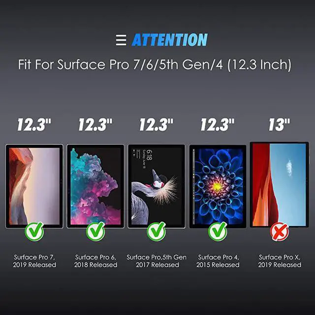 Perfect Match: Specially designed for Surface Pro 7 / Surface Pro 6 / Surface Pro (5th Gen) / Surface Pro 4 12.3 inch. Not for any other tablet *****2.
