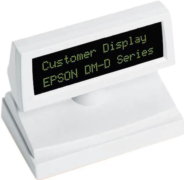The DM-D110 customer display features a vacuum fluorescent display. Choose from an extensive character table with built-in flash memory for easy downloading. The DM-D110 can be tilted and swiveled to a variety of angles. Additionally, extendable pole units that attach directly to Epson printers are available for those environments in which counter space is at a premium.