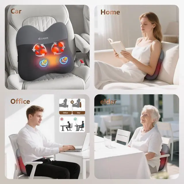 Back Massager with Heat, Cordless Back Massage for Pain Relief Deep Tissue, 4D Shiatsu and Percussion Massage Pillow, Lower Back Massager for Office Chair, Gifts for Women Men Christmas, Grey