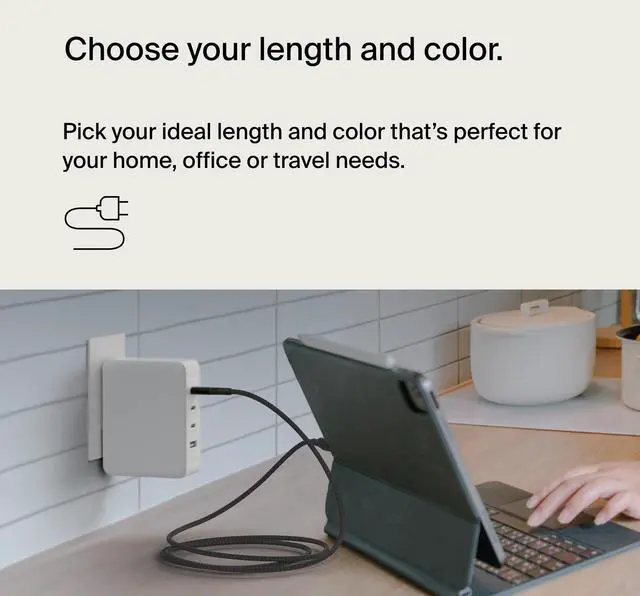MADE TO LAST: This USB-C to USB-C cord is designed for lasting use, with a durable anodized aluminum cable head and double-braided nylon cable design that's been tested to survive over 30,000 bends and 10,000 plug-ins.