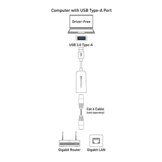 The Cable Matters USB 3.0 to Gigabit Ethernet Adapter is specifically designed to provide network capabilities to the older computers or new thin notebooks without an Ethernet port. Instantly add network connectivity to a computer with USB 3.0 for extremely fast file transfers or streaming downloads. Wired connections provide faster data transfers and better security than a Wi-Fi connection.