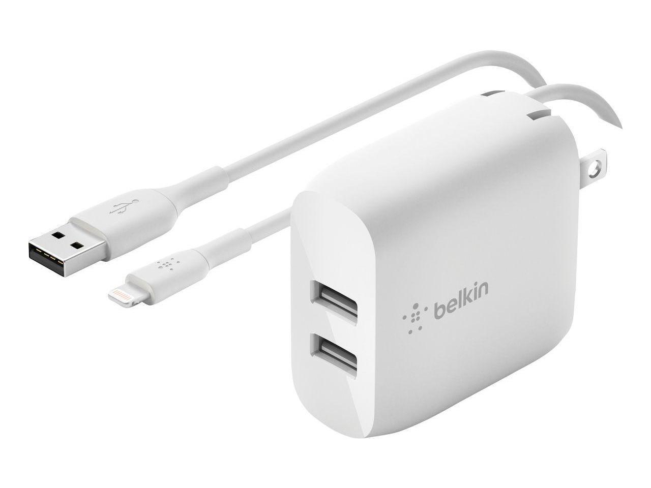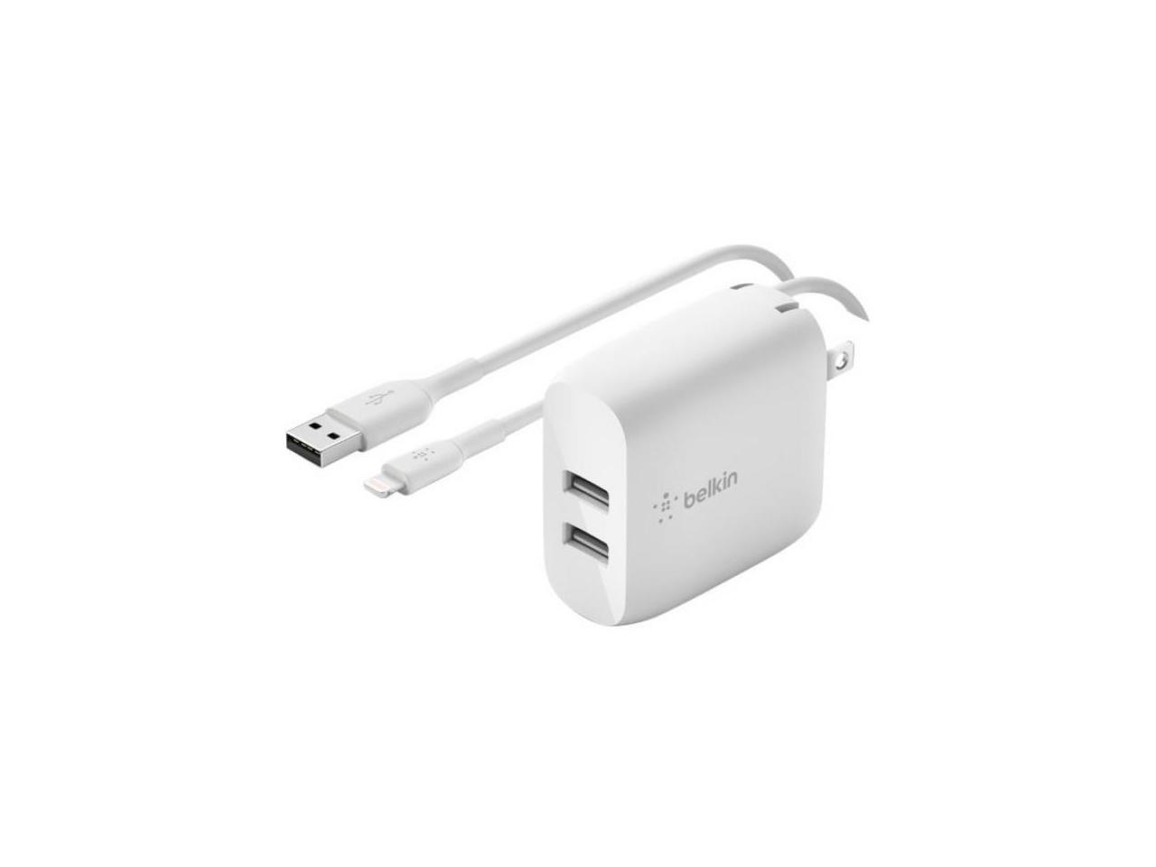 BELKIN WCD001dq1MWH White BOOST CHARGE Dual USB-A Wall Charger 24W + Lightning to USB-A Cable