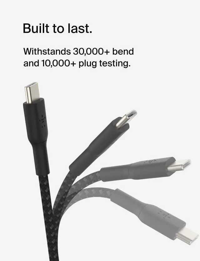 SUPERIOR DURABILITY: The Belkin BoostCharge Cable has been tested to survive over 30,000+ bends, and is more durable than a typical USB-C cable