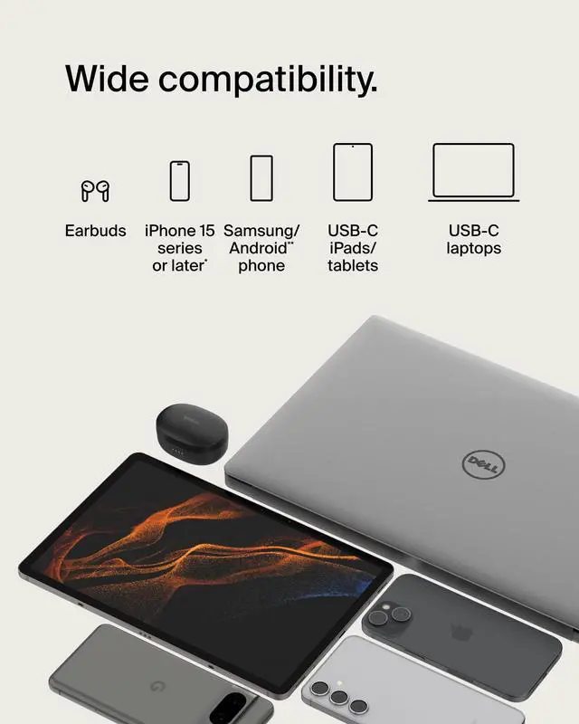 BROAD COMPATIBILITY: Get universal compatibility with this Belkin BoostCharge cable, designed to seamlessly connect with a wide range of devices such as Apple iPhone 17 and 16 Series, Samsung Galaxy S25 & S24, Google Pixel 9, Nintendo Switch 2 and other USB-C compatible devices. Also supports Apple Carplay and Android Auto.