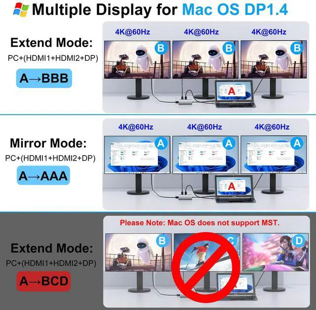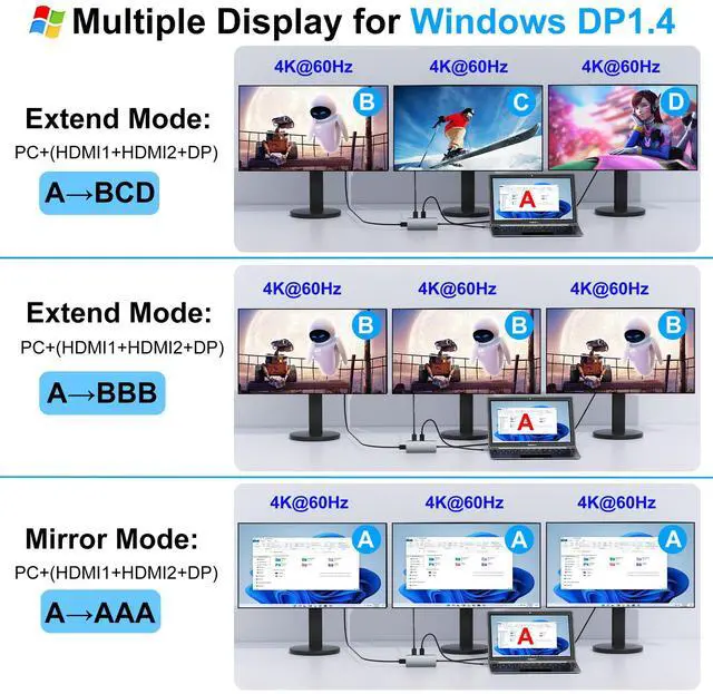Note: NOT for all USB-C port laptops, Make sure your laptop or PC supports ” Thunderbolt 3” ” Thunderbolt 4”or “displayport output mode(DP ALT mode).