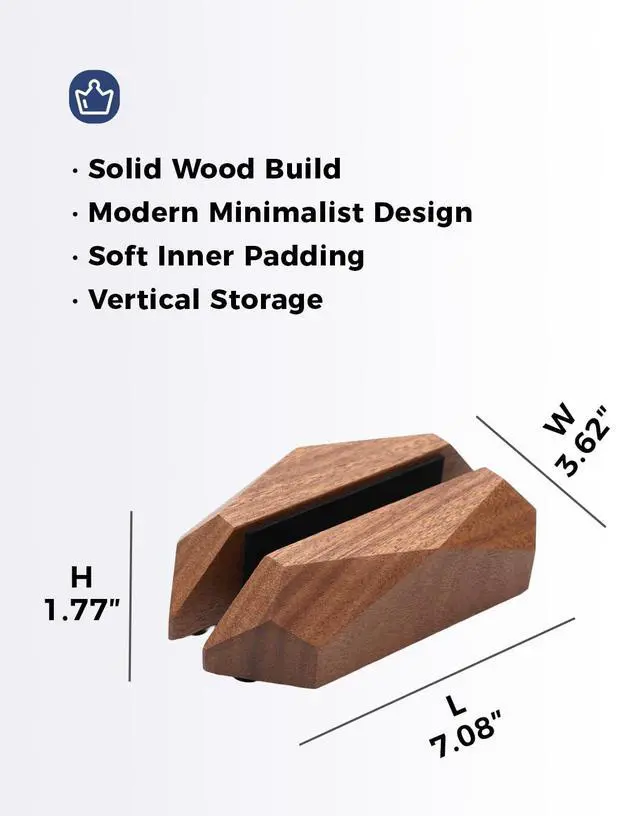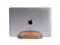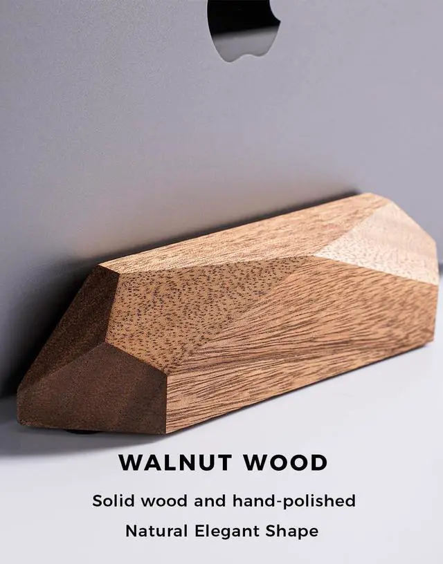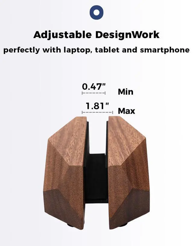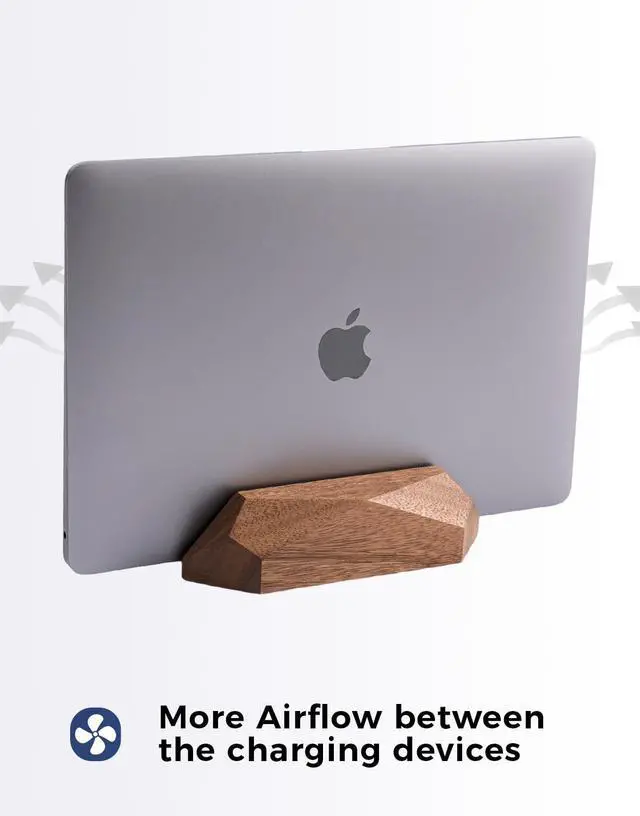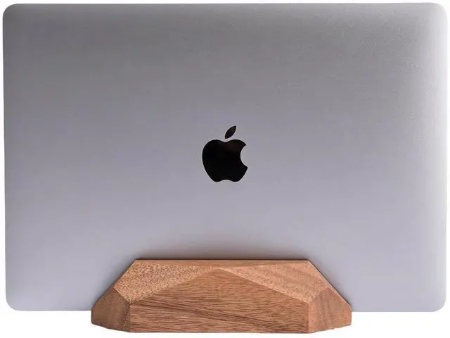 This adjustable wooden laptop stand features a sleek geometric design and a solid wood build for lasting durability. The slot width fits various laptop sizes, while soft inner padding prevents scratches. Its vertical layout helps save desk space and keeps your workspace neat.