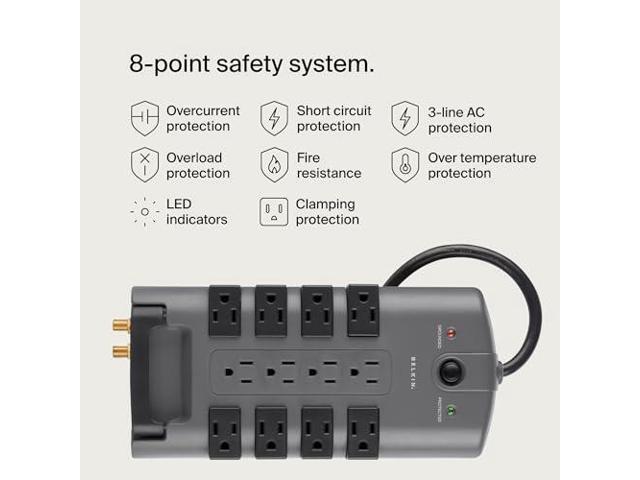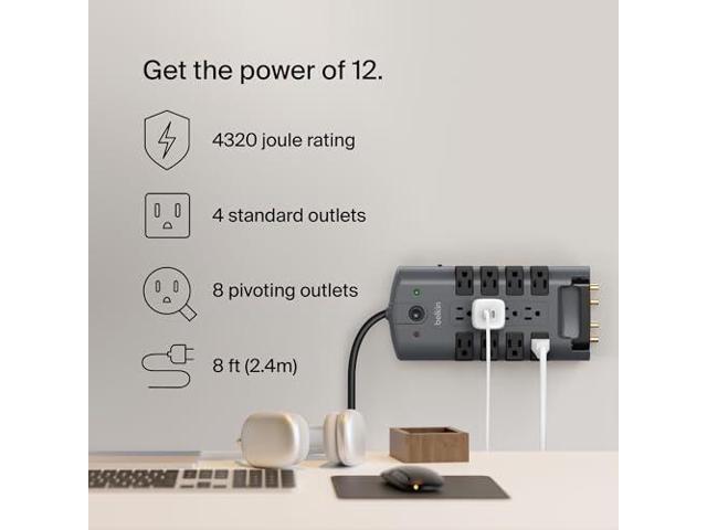 - Power Strip Surge Protection: Rest easy knowing that your electronic devices are safe from short circuits, power spikes, lightning strikes, and energy fluctuations thanks to the 4320 Joules of protection offered by this Belkin surge protector.