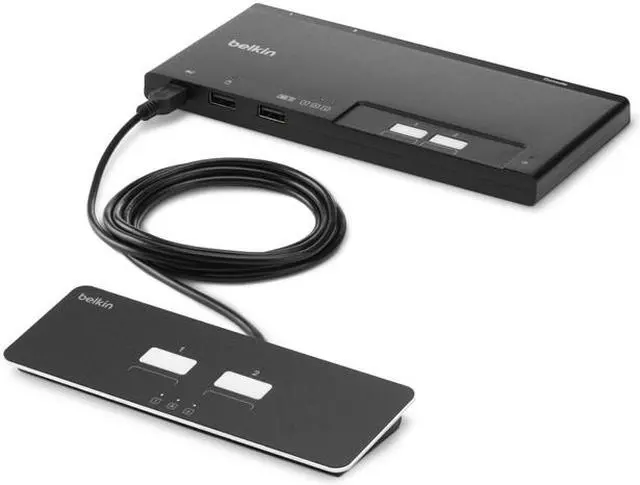 | Features | Modular form factor for maximizing desk space. Supports unique integrated cables for easy deployment. Designed for NIAP PP PSD 4.0 Compliance. Supports up to two host computers. Supports up to 8 displays for the user. Supports a unique remote-control unit. Dedicated processors with emulators for every port: Isolated port paths for video, audio, and peripherals prevent data leaks between computers. Unidirectional data paths: Optical data diodes prevent peripherals from being used to breach systems. Peripheral management: USB device detection prevents unauthorized peripheral usage. Anti-tampering and secure labeling: Holographic tamper-evident product label provides visual indication and prevention of tampering. Customizable port coloring and naming on the remote control: Facilitates port identification and reduces user switching errors. Fast switching: No keyboard or mouse delays when switching ports, minimal video delay. Secure packaging: Tamper-evident packaging ensures product is not tampered with during transport. |