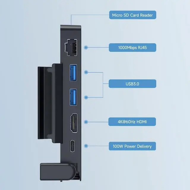 6 in 1 Docking Station for Steam Deck: Hagibis 6 in 1 docking station for Steam Deck OLED with 4K@60Hz HDMI 2.0, 1000Mbps RJ45, Micro SD card reader, 2 USB 3.0 ports and 100W PD USB-C full speed charging port, connects the handle or keyboard and mouse. You can play as you want