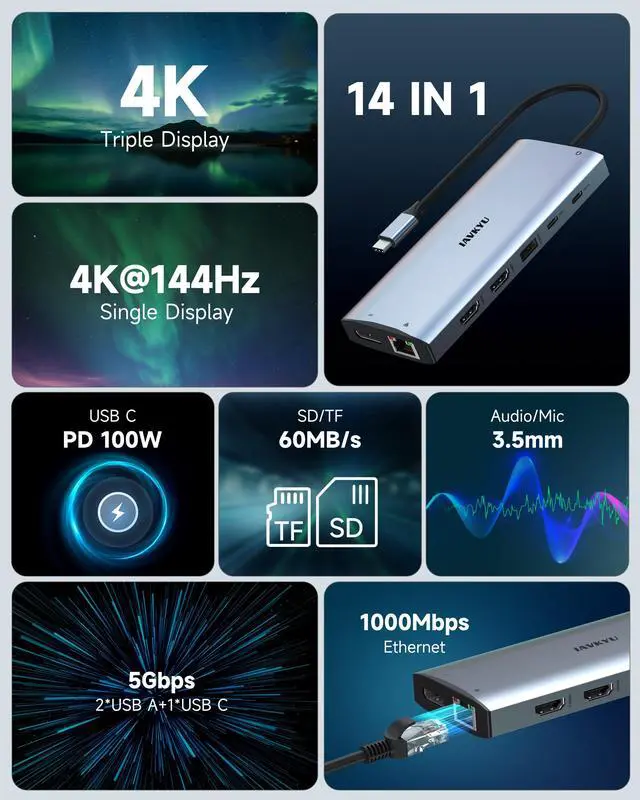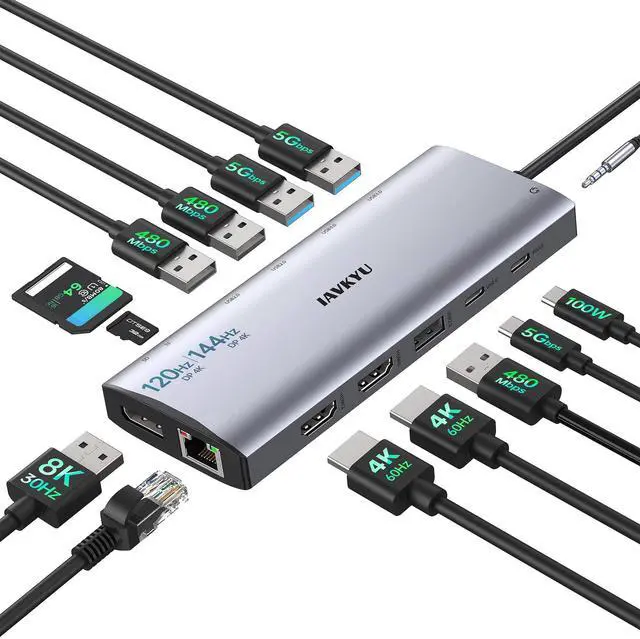1:Please ensure that your device has Thunderbolt 3/4 or USB-C 3.1 Gen2 or higher ports that support “Power Delivery, DisplayPort, and Alternate Mode.” These full-featured USB-C ports should support display, charging, and data transfer protocols. If, after purchase, you find that the screen extension function is not working, please check whether your laptop's USB-C port supports the above-mentioned features.-------If you are unsure, you can contact IAVKYU.