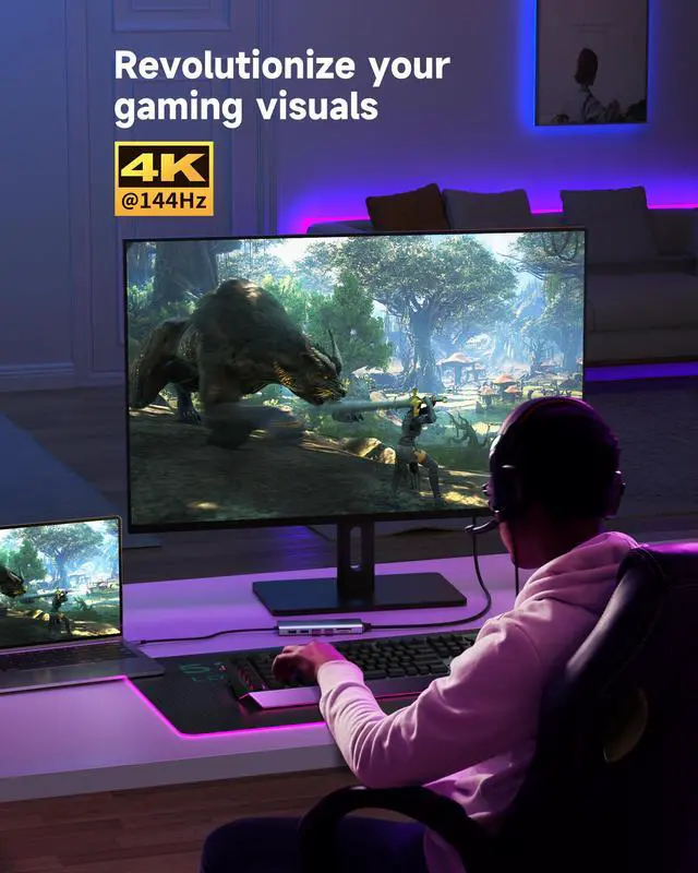 3:single display(Windows): 1).The single DisplayPort connection can achieve a resolution of 8K@30Hz or 4K@144Hz/4K@120Hz/4K@60Hz ,A single connection via HDMI1/HDMI2 can achieve a resolution of 4K@60Hz(the laptop graphics card source is DP1.4);2).A single connection via DisplayPort or HDMI1/HDMI2 can achieve a resolution of 4K@30Hz or 1080P@60Hz (the laptop graphics card source is DP1.2);