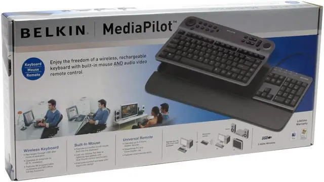 | Features | 27-button docking station to recharge the keyboard using USB, Remains fully operational while recharging, Comes with a 3-button scroll mouse and a 360-degree cursor control pad, Offers infrared smart remote with the ability to learn obscure codes from older remotes, Allows you to program up to 96 functions with specialized programming software, res a removable palm rest for comfort and added flexibility |