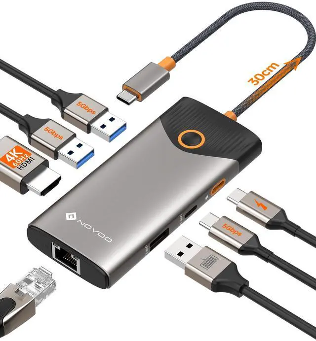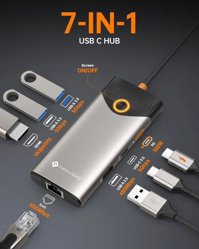 NOVOO 7 in 1 USB C Hub Ethernet 4K@60 USB C HDMI Adapter