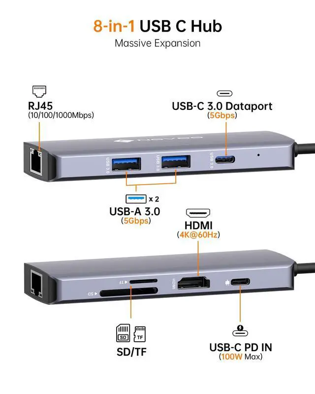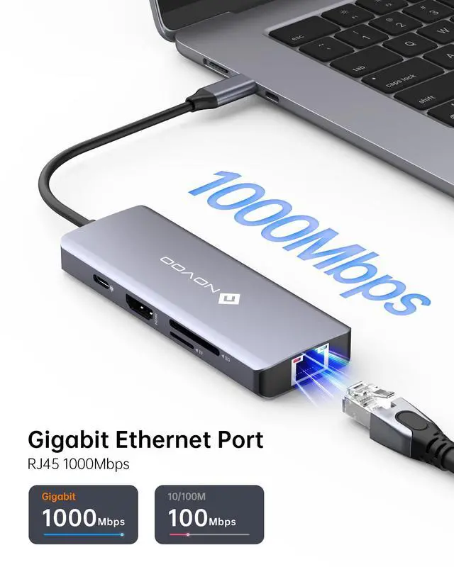 NOVOO 7 in 1 USB C Hub Ethernet 4K@60 USB C HDMI Adapter