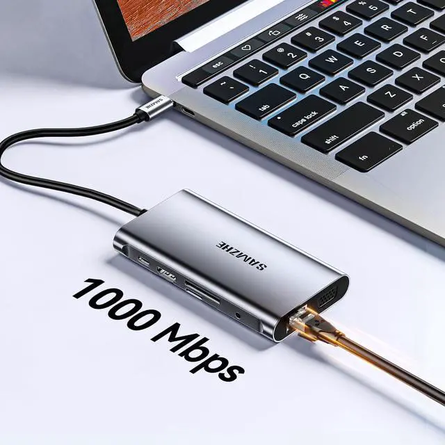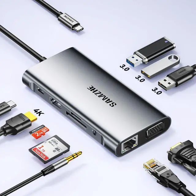 10-in-1 USB C Hub Multiport AdapterExpand your laptops USB-C port into 10 essential connections: 1×HDMI 4K@60Hz, 1×VGA 1080P, 3×USB 3.0 (10Gbps), 1×100W PD charging, 1×Ethernet (100Mbps), 1×SD, 1×TF, and 1×3.5mm audio jack. More ports than standard 7-in-1 or 9-in-1 hubsperfect for business, travel, and remote work.