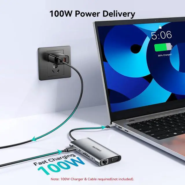 100W Power Delivery Fast ChargingKeep your devices powered while using multiple ports. The USB-C PD port delivers up to 100W input (87W output for safety), ensuring uninterrupted charging for MacBook Pro, laptops, or other Type-C devices. Recommended to use a 65W+ charger for best performance.