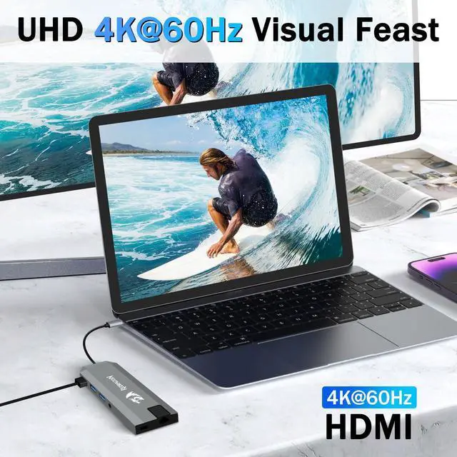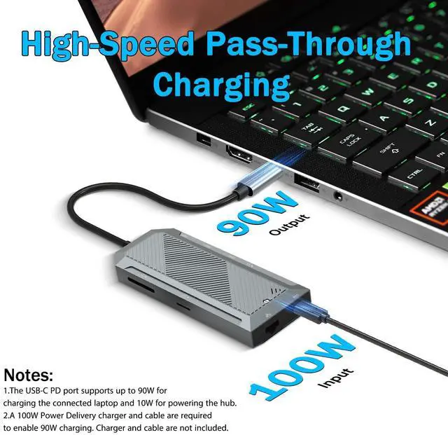 90W Laptop Charging + 4K Display: Power your laptop with 90W pass-through charging (requires 100W PD charger) and mirror/stream content in crystal-clear 4K@60Hz resolution via HDMI (DP Alt Mode required).
