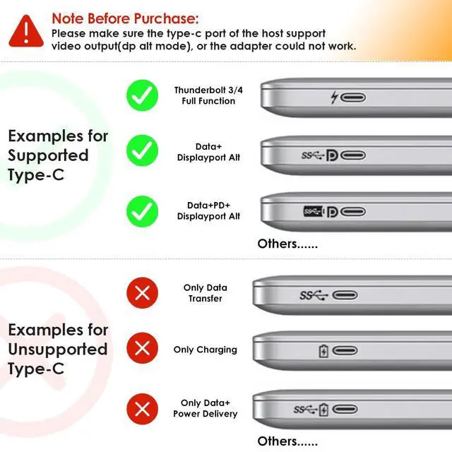 Please ensure the USB-C port on your host laptop supports video output and charging functionality.