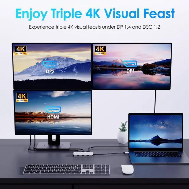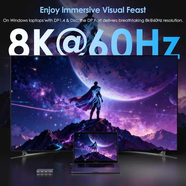 Docking station for Professional Creative Work - lf you are a designer,editor, or photographer who frequently uses professional software such as PS? PR? AE, do what u need.lt single 8K@60Hz display, Supports up to quad extended displays.