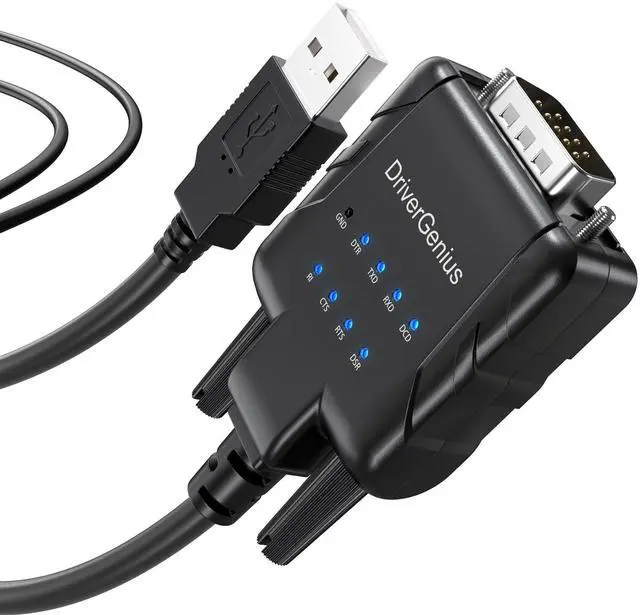 The DriverGenius 1 Port USB to Serial Adapter lets you add an RS-232 DB9 Serial COM port to your laptop or desktop computer, allowing it to control and communicate with a Serial Peripheral device. It is a perfect for IT Administrators looking to add legacy functionality to newer notebooks, PCs and servers that lack an integrated RS232 port. DriverGenius USB232A-E stands out in the market with its 9 x LED indicators design, which is a convenient to starter or professional PLC programmers.