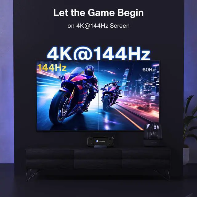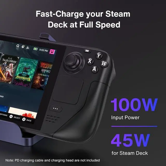 8-IN-1 Gaming Docking StationThis Steam Deck OLED Dock boasts an ultimate 6-in-1 connectivity. Featuring a 4K@144Hz HDMI port, a 1Gbps Ethernet port, three 5Gbps USB-A 3.0 ports, and a rapid-charging USB-C port,it delivers stable power to keep your devices battery charged during gameplay, this dock can perfectly complement your Type-c gaming console. The two equipped joystick caps can protect your joysticks from external friction and scratches.Dock Deck to your TV and play games on the couch with your favorite wireless controllers.