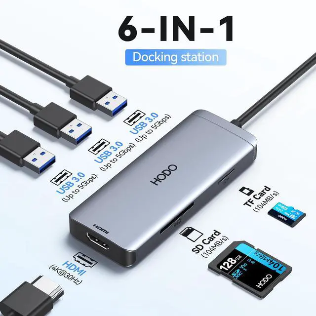 USB-C Hub Multiport Adapter for MacBook Air/Pro - 6 in 1 HDMI Dongle with 4K, USB 3.0 Ports, SD/TF Card Reader for MacBook m1/m2/m3/m4, Dell XPS, HP, Lenovo, Surface and Other Type-C Devices