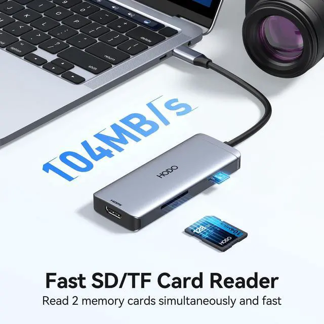 USB C to SD Card Reader: macbook pro dongle is the best card reader for photographers and designers, with a data transfer speed of up to 104Mb/s, you can transfer large photos or hundreds of photos in a few seconds. This Mac Converter also supports sd and tf to work together