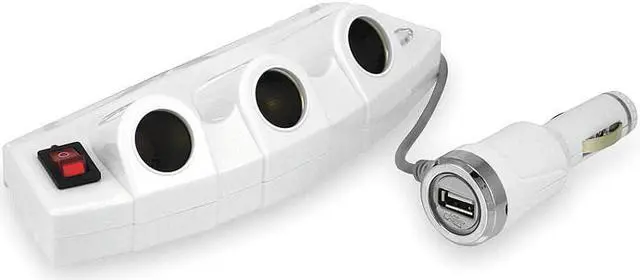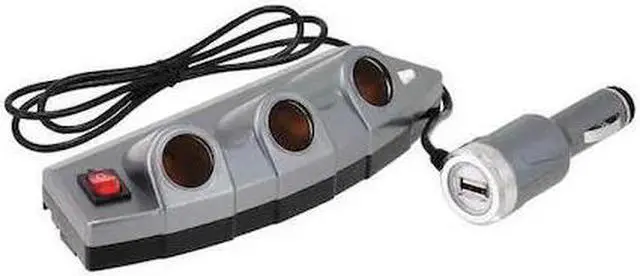 3-Outlet Power Strip with USB Port, Product Type Power Splitter and Charger, Number of Connections 4, Cord Length 4 in, Color Black, Ports 12V Auxiliary Port, USB, Includes On/Off Power Switch with LED Indicator and Fused Lighter Plug Protection, Current 5 A, Operating Voltage 12V DC. This item has been restricted from sale in the following state (s): []
