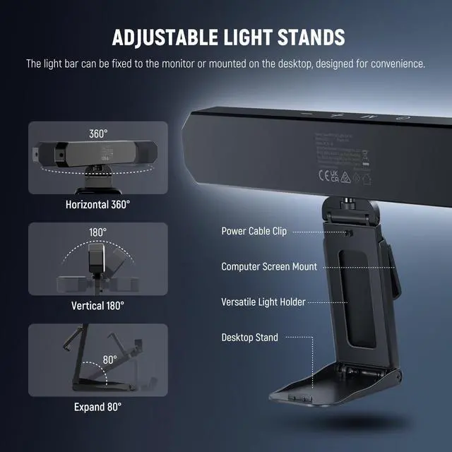 | Bright/Adjustable Angle&Height | Adjustable/Easy Setup | Magnetic Remote Controller | Dual Light/Adjustable | Bi Color/Adjustable | Lightweight/Adjustable |