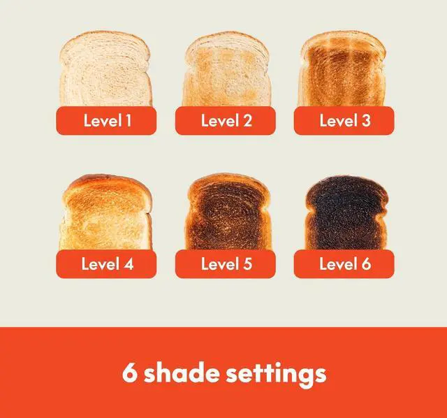 Toasted Perfection: Six shade settings with a convenient cancel function allow you to customize your bread to your exact preference, from lightly golden to dark and crispy. Achieve your ideal toast with just a simple turn of the dial