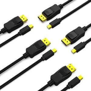 BENFEI 5 Pack Mini DisplayPort to DisplayPort 6 Feet Cable 4K@60Hz 2K@144Hz, Mini DP(Thunderbolt Compatible) to DP Cable (Male to Male) Gold-Plated Cord
