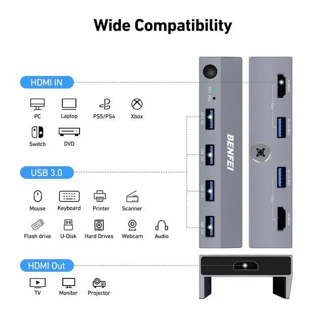 | 2*USB&HDMIIn 4*USB&1*HDMI Out | HDMI 2 in 1 Out or 1 in 2 Out | 4*HDMI In 1*HDMI Out | 2*USB In 4*USB Out | 2*USB In 4*USB Out |