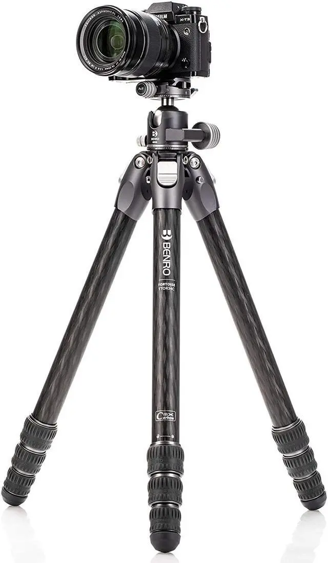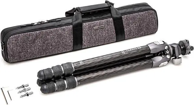 The Tortoise Series offers two distinct types of tripods: one designed for photography with a flat platform for head mounting, and another for videography that includes a ball levelling device for head mounting. This particular model is a photography tripod, crafted from durable carbon fiber and capable of supporting up to 44lb (20kg) while weighing in at just 1.27 lb ( 0.58 kg). This impressive weight-to-capacity ratio ensures that it can accommodate a wide range of photography equipment without compromising on portability. Included with the tripod is the GX35 Ball Head, a low-profile dual panoramic head that enhances the tripod's functionality. The unique design of the GX35 allows for a higher payload and facilitates smoother, more controlled camera movements. It features a dual panoramic mode, enabling you to pan the head from its base as well as from the quick-release platform. Additionally, it includes a main ball locking and friction control system for added precision and stability. In summary, the Tortoise Columnless Three Series 4-Section Carbon Fiber Tripod with GX35 Ball Head is a testament to the blend of portability, durability, and high performance. It's an essential tool for any photographer seeking a reliable, lightweight tripod that doesn't compromise on strength or stability.