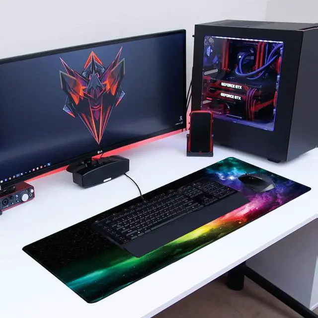 SPACIOUS SIZE- Dimension of this XXL mouse pad is 35.4x15.7x0.12", provides larger area to fit your keyboard and mouse and other desk items. Allowing an easy solution for game play, work, study and a clean desk at the same time.