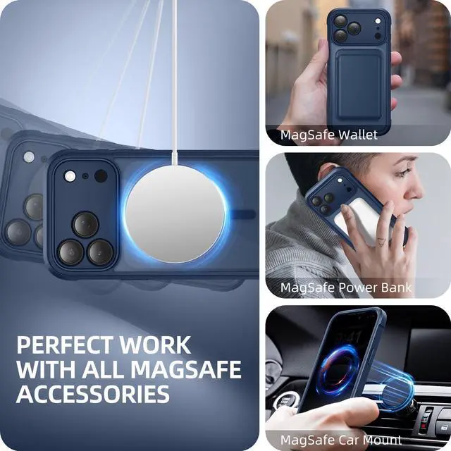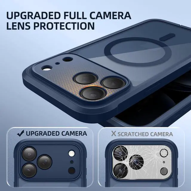 BERFY for iPhone 17 Pro Max Case, Compatible with MagSafe, Built-in Privacy Screen Protector and Camera Protection, Anti-Spy Full Body Shockproof Clear Phone Case for 17 Pro Max 6.9", Deep Blue