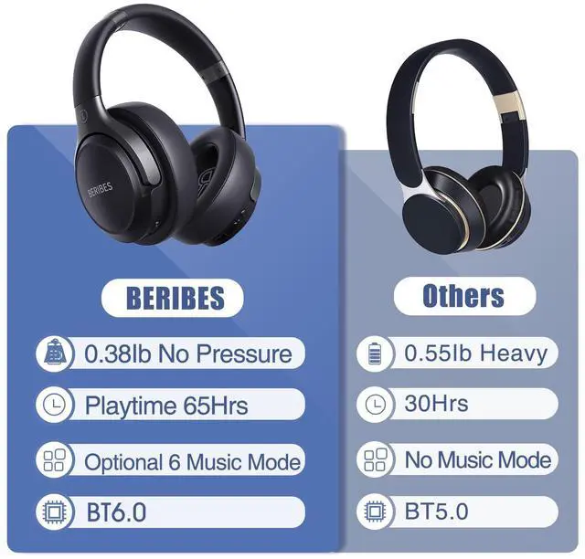 BERIBES 6EQ Headphones are made of high quality materials, which enable our products to have a longer service life, more upscale look, better texture, better function.