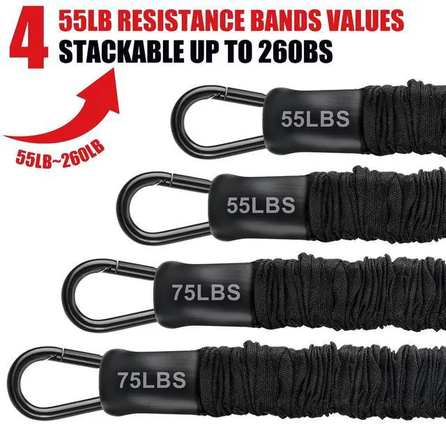SUPER STURDINESS and SAFETY- Pull up bands are designed for both durability and security. High-quality protective nylon sleeves and robust metal carabiners ensure top safety. Empower yourself with the reliability to push boundaries and achieve the perfect chin ups every time. Each tube fitness band is double-layered and carefully constructed to provide maximum resistance. making it more elastic, durable, safe, and reliable. Which can withstand intense daily exercise sessions and ensure your training goes perfectly. With a weight capacity of 260 lbs, you can feel confident and secure during your intense workouts. Ensuring a safe and effective workout session.