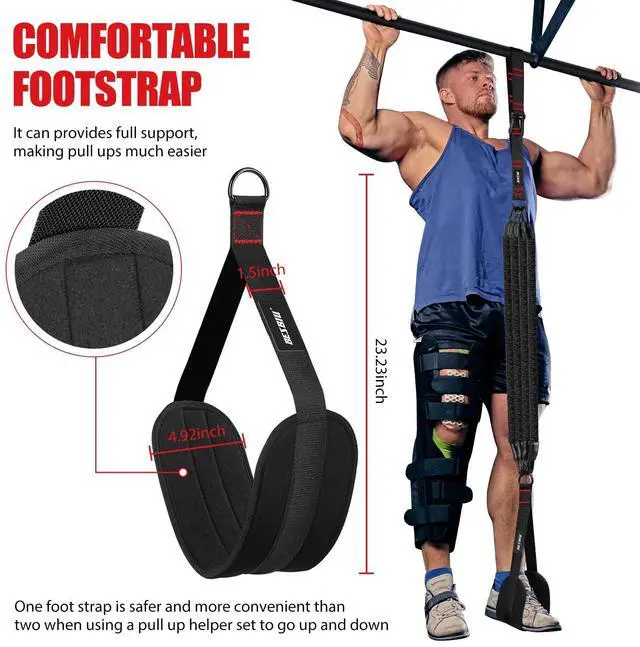 Non-slip foot strap gives support for pull-up or chin-up. Assisted pull up bands help maintain focus and correct pull-ups during strength training.
