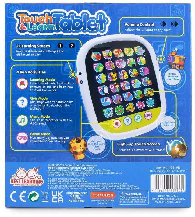 This is the perfect first learning tablet for babies and toddlers, designed to make every touch a delightful surprise. With rich auditory and visual interaction, young learners can explore the letters A to Z, hear pronunciations, learn spellings, and sing along with the ABC song. The tablet also includes engaging quizzes and memory games, turning early learning into an exciting and immersive experience!