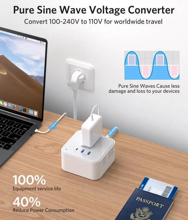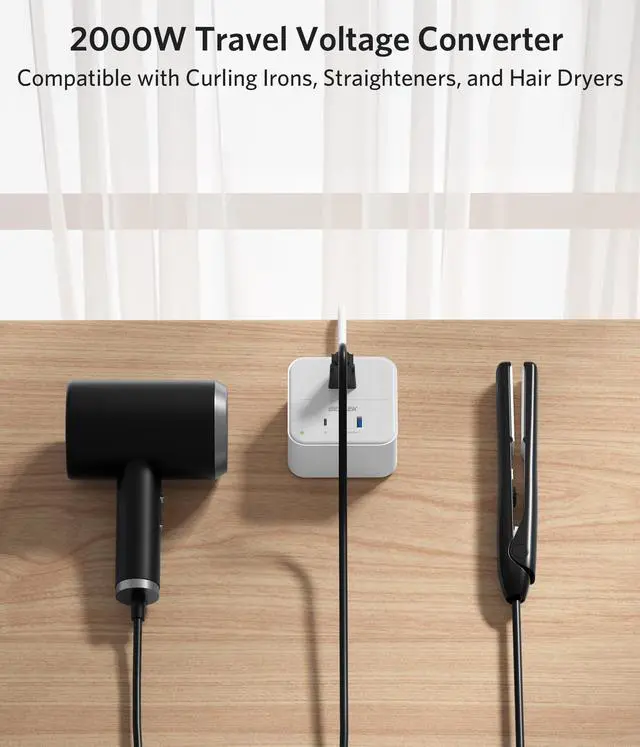 Power Up Anywhere Designed for Single and Dual Voltage Devices: Our 220V to 110V voltage converter supports both 110V single-voltage and 100-240V dual-voltage electronics. With a maximum 2000W output, you can easily power high-demand appliances abroad, ensuring seamless performance for both personal and business trips.