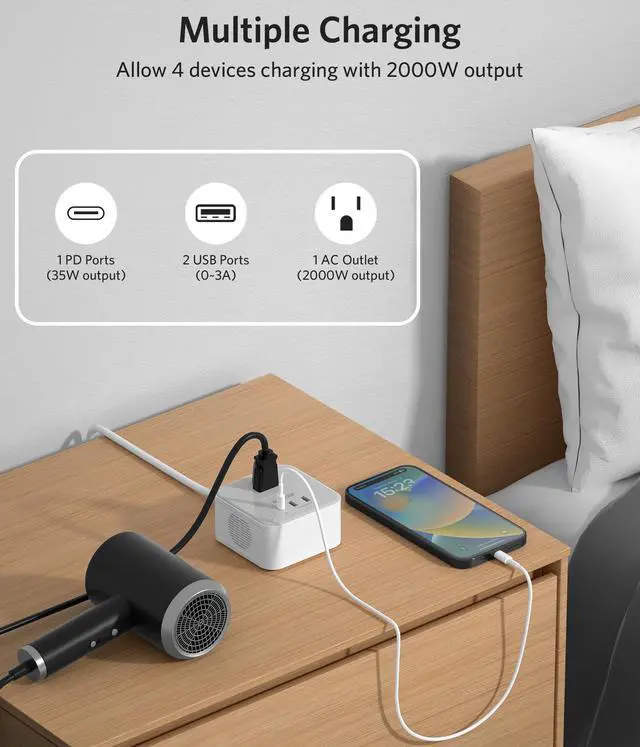 Built-In Fast Charging USB-C PD 35W Port: Keep your smartphones, tablets, and other gadgets charged at full speed with the integrated 35W USB-C Power Delivery port. No need to carry extra chargersthis travel adapter ensures all your devices stay powered efficiently during your journey.