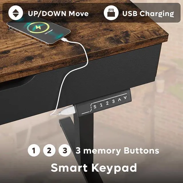 Adjustable Comfort: The electric standing desk adjusts between 28.3 to 46.5 inches in height, facilitates transitions between sitting and standing, promoting healthier lifestyle habits.