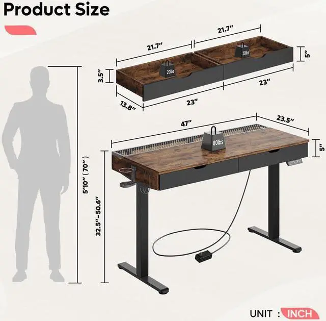 Dual Drawers: Make the most of your space. This electric standing desk has two drawers to store & organize all your things