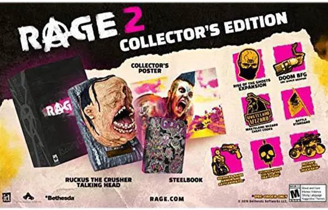 Dive headfirst into a dystopian world devoid of society, law, and order. RAGE 2 brings together two studio powerhousesAvalanche Studios, masters of open world insanity,and id Software, creators of the first-person shooter to deliver a carnival of carnage where you can go anywhere, shoot anything, and explode everything. An asteroid has annihilated 80% of the earths population, and humanitys numbers are dwindling. Ruthless and bloodthirsty gangs roam the open roads and the tyrannical Authority seek to rule with an iron fist. As Walker, the last Ranger of the wasteland and a threat to their power, you have been robbed of your home and left for dead. Now youll have to rage for justice and freedom. With ludicrous vehicle combat, super-powered first-person mayhem, and an open world full of emergent madness, you will tear across an unforgiving wasteland battling sadistic gangs to find the tools and tech needed to crush the oppressive rule of The Authority once and for all.Actual product(s) may vary from image.